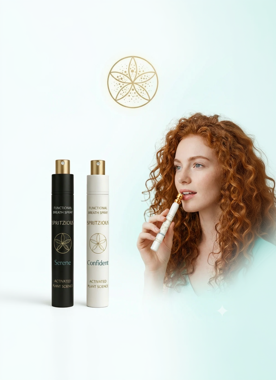 Confidence when you need it. Calm when you need it. Clean mint. Pocket size — simple, all natural, one spritz